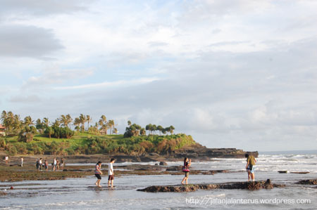 Pantai tanah lot ini tidak berupa pasir tetapi berupa batu-batu karang, sehingga harap berhati-hati karena agak licin dengan lumut dan rumput-rumput lautnya.