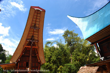 Tidak begitu jauh dari Lemo sekitar setengah jam dengan medan perjalanannya juga lebih kurang sama dengan yang di Lemo, menyusuri kaki-kaki bukit kemudian masuk jalanan ke kampung-kampung, bertemulah kita dengan berderet-deret Tongkonan.