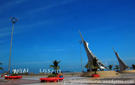 Losari saat ini berupa anjungan yang menjorok ke laut dengan tulisan gede PANTAI LOSARI di bibir anjungannya. Dan menurut gw saat ini rupa pantainya yang gw asumsikan berupa pasir-pasir sudah tidak ada dan sudah tergantikan dengan beton anjungan.