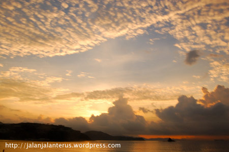 Pantai ini menghadap timur sehingga sangat cocok untuk menikmati sunrise atau matahari terbit darisini sambil melihat lalu lalang kapal ke pelabuhan Yantian.