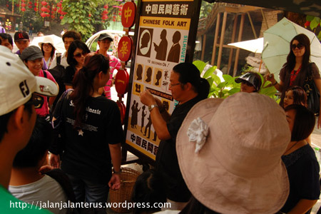 Didalam kawasan ini selain melihat wahana-wahana seperti diatas juga kita mencicipi makanan khasnya terus bisa berfoto dengan baju adatnya dan tentu juga menjual souvenir-souvenir khas China. Dan ada yang menarik juga disini ada seniman siluet alias Chinese Folk Art yang hanya butuh 10 detik untuk membuat siluet muka kita dengan hanya menggunakan gunting.