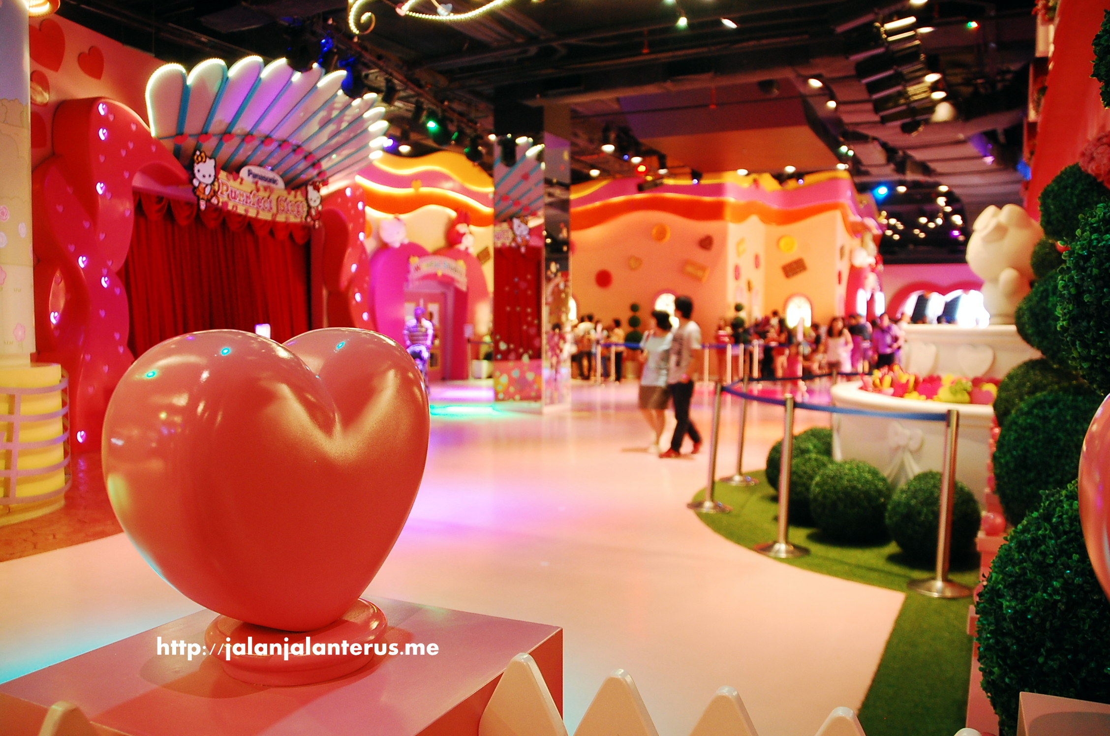 Nach di Hello Kitty ini sendiri semuanya bertema pink dan hello kitty, so semuanya ber ala ala Hello kitty tersebut mulai dari gerbang masuk sampai pernak pernik yg kecil-kecil. Di Helo Kitty Land ini tdpt beberapa atraksi yg pastinya anak2 langsung suka yaitu masuk ke rumah Hello Kitty nya dimana didalamnya layaknya rumah mulai dari ruang tamu, kamar tidur, kamar mandi, dapur, ruang belajar dan lain-lain berbau hello kitty, dijamin anak-anak cewek bingung mau megang yang mana . Kemudian juga ada berupa wahana adventure yg memecahkan teka teki di dalamnya dan jika berhasil akanmendapat sertifikat. Dan selain itu ada bbrp wahana lain seperti membuat cookies , jewelry, badge dan foto kostum. Oiya di jam-jam tertentu karakter Hello Kitty akan keluar utk melayani foto bersama , so harus waspada agar anak cewek nya bisa puas foto bersama dengan idola nya. Dan fotonya nanti bisa dibeli Rm35 utk 1 buah ato dikumpulin jadi 4 menjadi RM100. Dan selain itu di jam-jam tertentu juga ada lagi semacam parade-parade. SO, termasuk ok kesini jk ada punya anak cewek utk ngebunuh penasarannya.