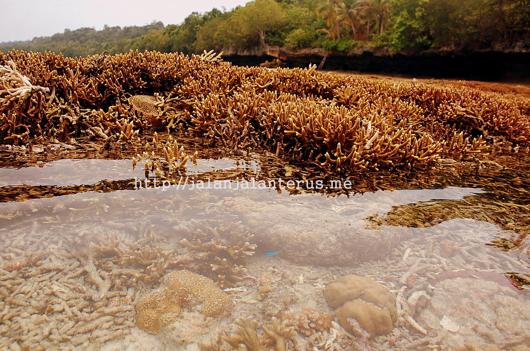 Sepertinya sudah banyak melihat ulasan dan foto pejalan yg foto dengan ubur2 di danau Kakaban. Nah tidak jauh dari situ ada lagi spot yang tidak boleh dilewati. Ini juga berupa danau tetapi hanya pas air surut karena ketika pasang air di danaunya menyatu lagi dengan air laut.