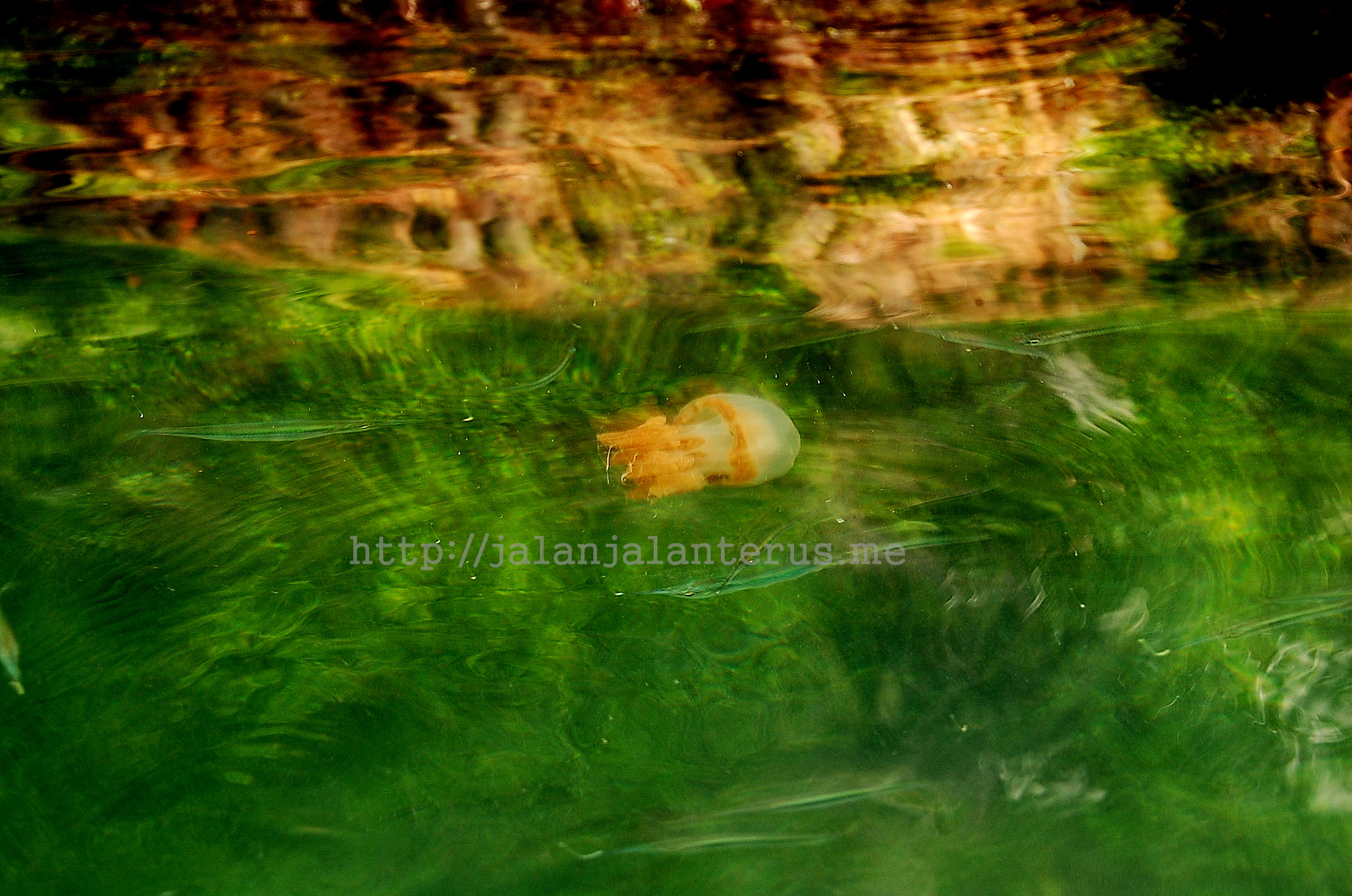 Danaunya ini luas banget…selain tidak beracun , ubur-ubur ini juga bentuknya terbalik , tidak seperti ubur-ubur yang berada di laut. Dan ubur-ubur di danau ini infonya ada 4 jenis dan ada beberapa warna juga.Gw hanya sempat ketemu 2 jenis dan 3 warna pas snorkeling disini. Salah satunya seperti yg difoto atas kayak jamur kebalik